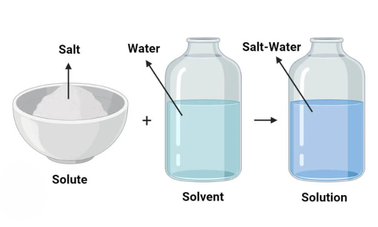 | Salt | Solute | Dissolves into ions (Na⁺ and Cl⁻) in water |